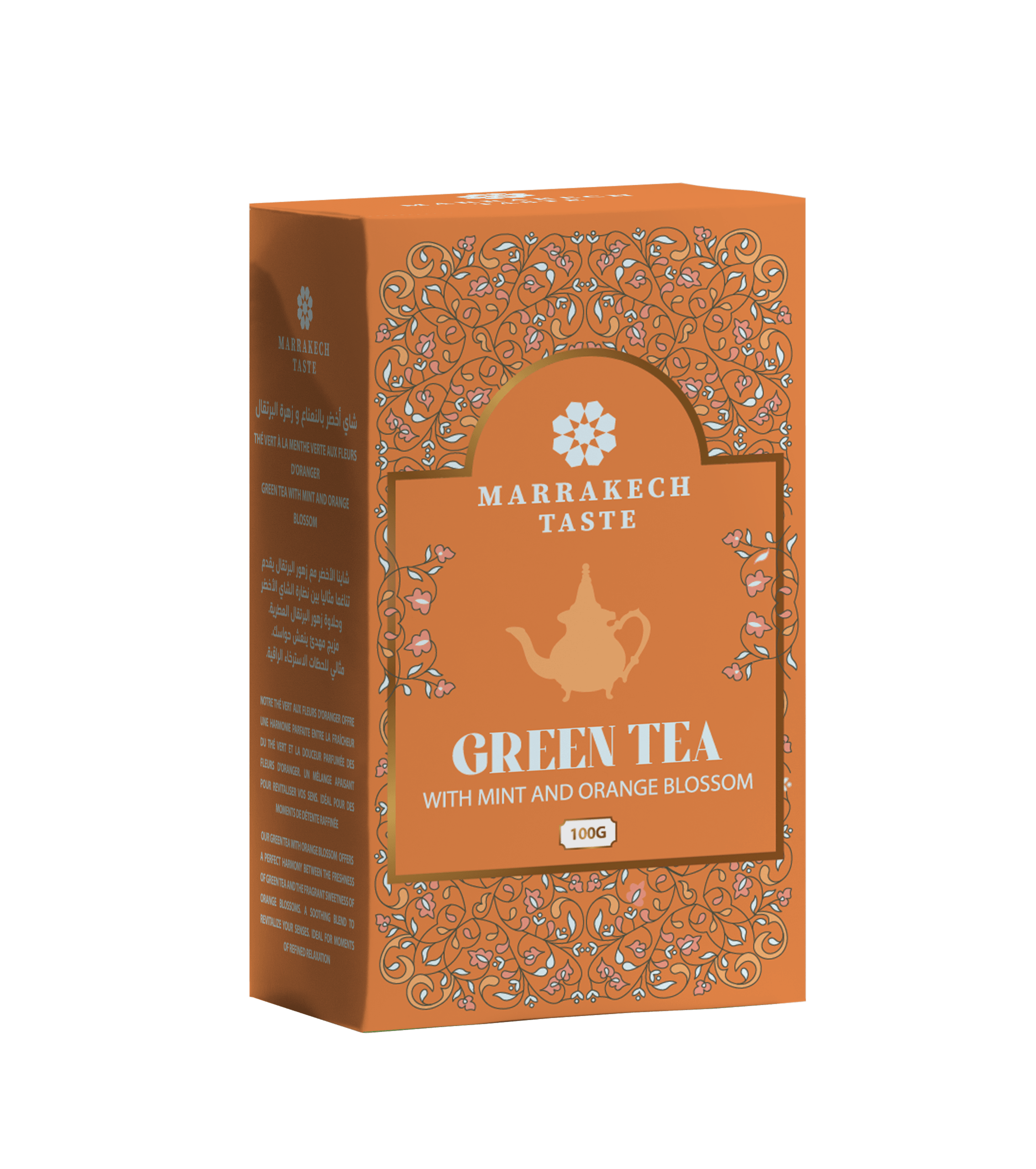 Experience the delicate flavours of our Moroccan Green Tea with Mint & Orange Blossom. This blend combines antioxidant-rich green tea with fragrant orange blossom petals and cool mint leaves, creating a citrusy yet refreshing infusion inspired by the tea rituals of Marrakech.